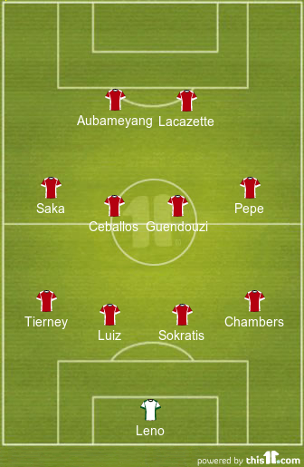 Hector Bellerin is still unlikely to be risked in the Premier League, especially after a strenuous game against Liverpool. He will once again make way for Calum Chambers. Kieran Tierney is expected to return as well, after making his Premier League debut last weekend against Crystal Palace.