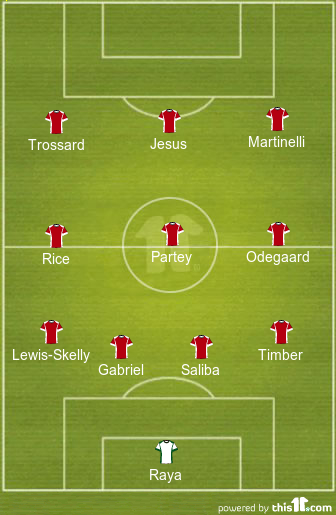Timber’s return will allow Thomas Partey to be deployed as the engine of the side in the midfield. While Declan Rice continues in the middle of the park, Martin Odegaard is likely to return to the XI to accompany him.
