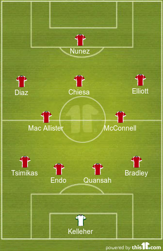 Arne Slot would surely not bother Mohamed Salah to play in this fixture and Harvey Elliott is likely to play on the right flank. Federico Chiesa and Luiz Diaz are also called up to take the offensive roles.
