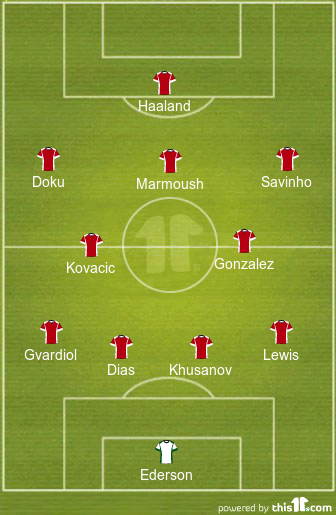 Ederson is likely to return between the sticks for Manchester City, sending Stefan Ortega back to the bench. Rico Lewis also marks his return at the right-back spot at the cost of Vitor Reis.