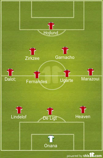 Ayden Heaven has been impressive and should retain his spot in the three-man backline amid the injury of Leny Yoro. While Matthijs de Ligt continues in the defensive line, Victor Lindelof could get a chance as Harry Maguire is also doubtful for this game.