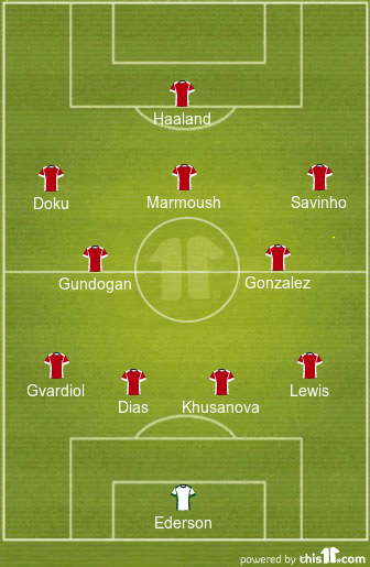Ruben Dias and Abdukodir Khusanov are likely to form the heart of the defence yet again. Left-back Josko Gvardiol also keeps his place in the starting lineup.