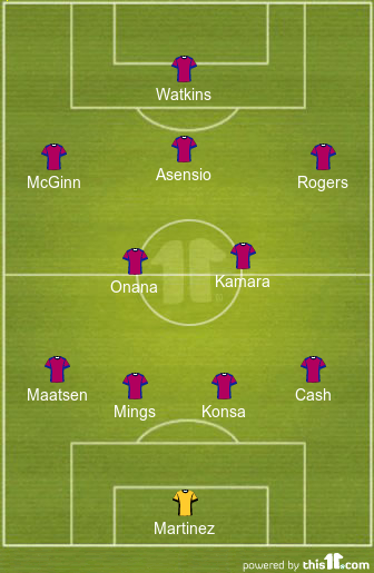 Unai Emery will set his team up in a 4-2-3-1 formation and is expected to make some changes to his first XI for this game. Ian Maatsen and John McGinn could both get a chance to impress from the start of this contest.
