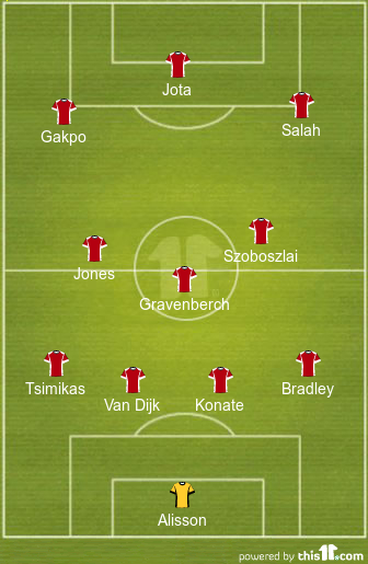 Arne Slot will set his players up in a 4-3-3 formation and could be inclined to make some tweaks to his first team for this game. Virgil Van Dijk, Curtis Jones and Diogo Jota are all expected to play from the start of this contest.