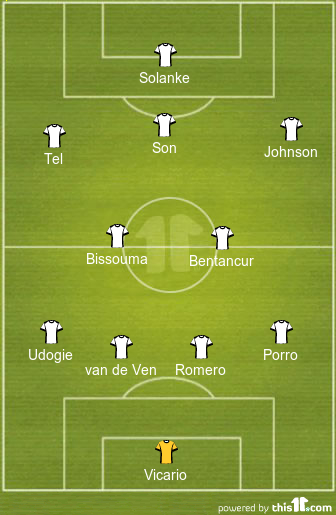 Ange Postecoglu will opt for the 4-2-3-1 formation and is expected to make a few changes to his starting XI for this clash. Dominic Solanke, Brennan Johnson and Rodrigo Bentancur could all play from the start of this game.