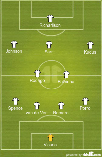Rodrigo Bentancur and Joao Palhinha will anchor the midfield for Spurs as they focus on winning the 50-50 battles in the middle of the park.