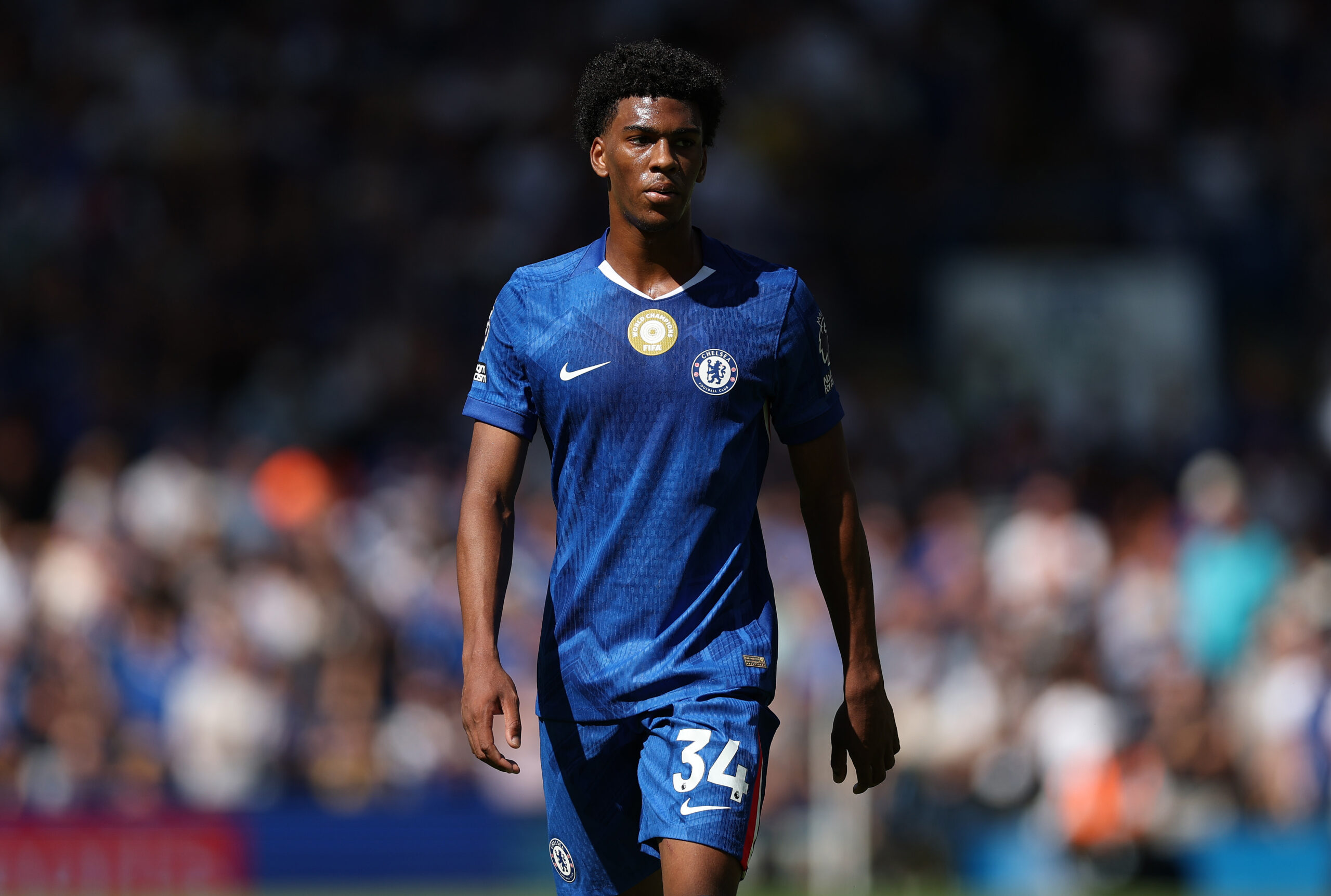 LONDON, ENGLAND – AUGUST 17: Josh Acheampong of Chelsea during the Premier League match between Chelsea and Crystal Palace at Stamford Bridge on August 17, 2025 in London, England. (Photo by Justin Setterfield/Getty Images)