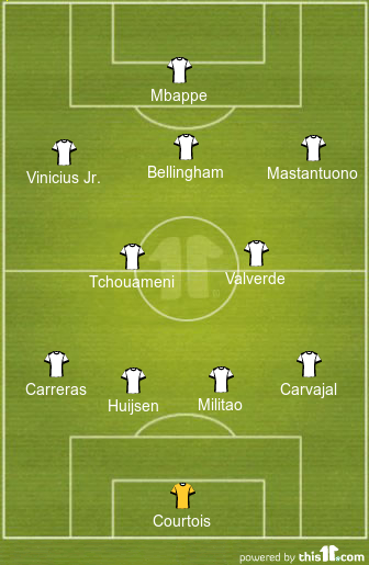Aurelien Tchouameni and Federico Valverde will anchor the midfield for Los Blancos as they try to dictate the tempo of the game in the middle of the park.
