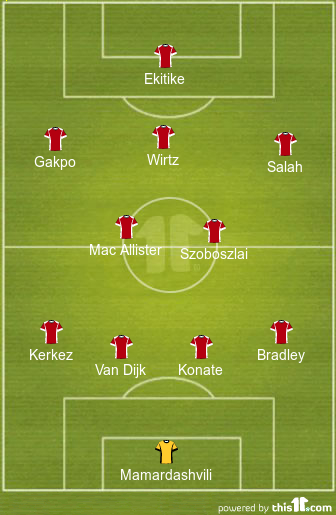 Giorgi Mamardashvili will function in goal for the Reds after being rested in midweek. Ibrahima Konate will operate alongside Virgil Van Dijk at the centre of the Liverpool defence as they look to keep a good shape on the defensive end of the field.