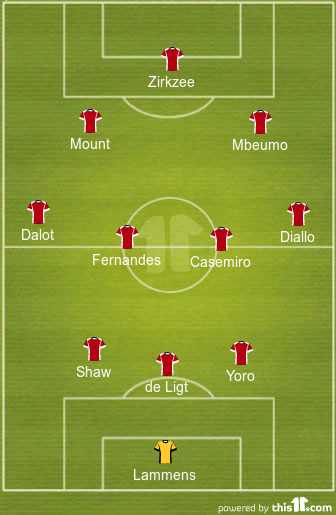 Senne Lammens will feature in between the sticks for the Reds after he shipped in one goal in his last outing. Amorim could opt for a back three of Luke Shaw, Matthijs de Ligt and Leny Yoro as they focus on keeping things solid at the back during the 90 minutes.