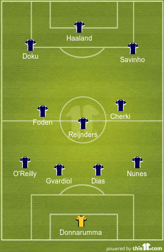 Jeremy Doku will try to prove his worth on the left flank, while Savinho hopes to give a good account of himself as the right-sided wide player. Both of them would look to get in behind the Leeds defence at every chance they get.