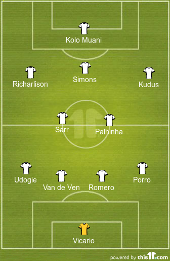 The talented trio of Richarlison, Xavi Simons and Mohammed Kudus will function just ahead of them as part of Frank’s attack. All three of them need to combine well if they are to cause problems for the PSG defenders on the counter.