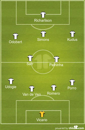 Thomas Frank will opt for the 4-2-3-1 formation and is expected to make some changes to his starting XI for this game. Wilson Odobert, Cristian Romero and Destiny Udogie could all play from the start of this contest.