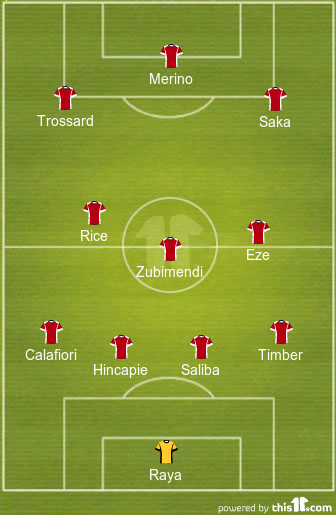 Mikel Arteta will set his men up in a 4-3-3 formation and is expected to keep changes to a minimum for this game. Hence, Mikel Merino will once again lead the charge for the North London club up top.