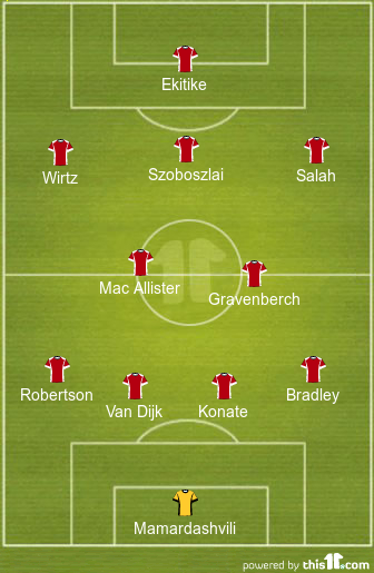 Alexis Mac Allister and Ryan Gravenberch will anchor the midfield for the Merseyside club as they look to set the tempo of the game at the centre of the park.