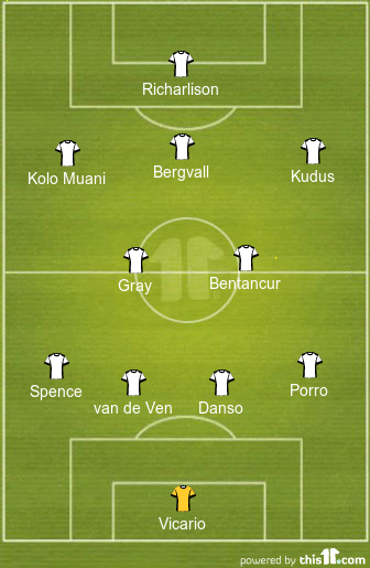 Archie Gray and Rodrigo Bentancur will anchor the midfield for the North London club as they look to win the 50-50 battles at the centre of the park.