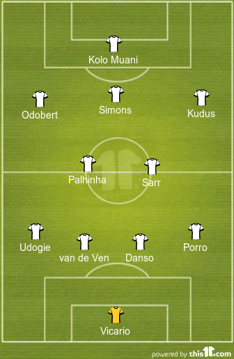 Joao Palhinha and Pape Matar Sarr will anchor the midfield for the North London club. Their main job would be to win the 50-50 duels at the centre of the park and orchestrate some inviting chances for their teammates up top.