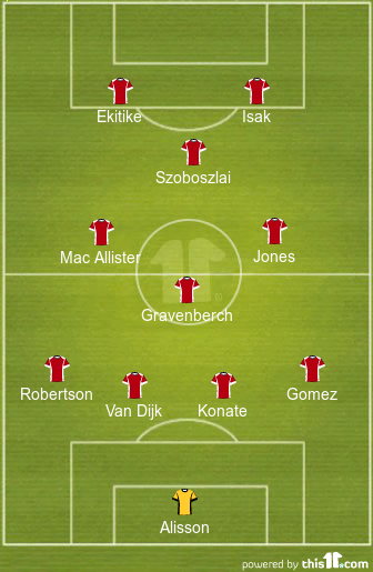 Ryan Gravenberch will anchor the midfield for Slot’s team, while both Alexis Mac Allister and Curtis Jones play just ahead of him as the box-to-box midfielders. All three of them need to work hard defensively if the Reds are to come out on top this weekend.