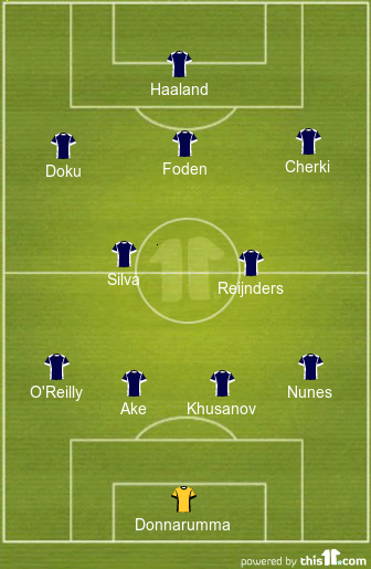 Pep Guardiola will opt for the 4-2-3-1 formation and is expected to make a few changes to his first team for this clash. Erling Haaland, Jeremy Doku and Nathan Ake could all play from the start of this game.