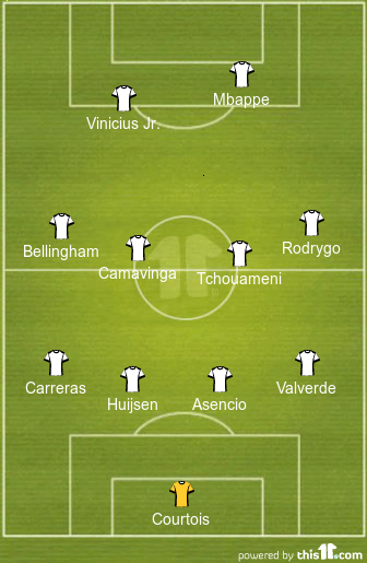 Eduardo Camavinga and Aurelien Tchouameni will operate as the holding midfielders as they look to win the 50-50 battles at the centre of the park.