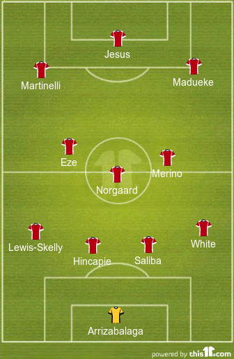 Arteta could opt for a midfield three of Eberechi Eze, Christian Norgaard and Mikel Merino as they focus on establishing their superiority over the opposition at the centre of the park.