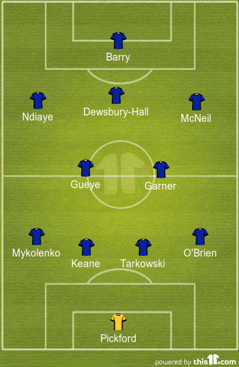 Idrissa Gueye and James Garner will operate as the holding midfielders as they look to win the 50-50 battles in the middle of the park and engineer some inviting chances for their teammates in the final third.