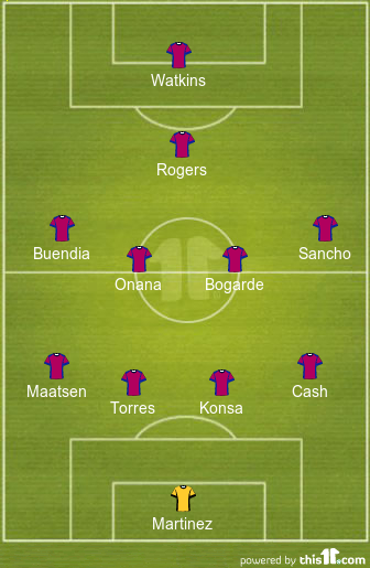 Morgan Rogers will play in the number ten position. He has to carry most of the creative burden for the Villans in the final third.