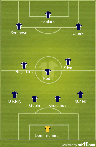 Pep Guardiola will set his men up in a 4-3-3 formation and is expected to make some tweaks to his starting XI for this game. Antoine Semenyo, Marc Guehi and Rodri could all play from the start of this clash.