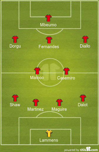 Kobbie Mainoo will anchor the midfield along with Casemiro as they focus on winning the 50-50 battles at the centre of the park. Both of them need to dictate the tempo of the game from midfield.
