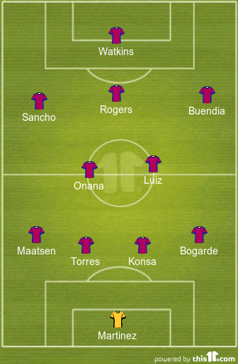 Unai Emery will set his men up in a 4-2-3-1 formation and is expected to make some tweaks to his first-team for this clash. Emi Buendia, Jadon Sancho and Ollie Watkins could all play from the start of this game.