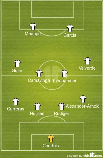 Arda Guler will get a chance to shine as the left-winger, while Federico Valverde hopes to produce another hard-working performance on the right flank. Both of them would try to make some overlapping runs out on the flanks.