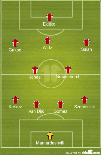 Arne Slot will set his side up in a 4-2-3-1 formation and is expected to make a few changes to his first XI for this game. Milos Kerkez, Curtis Jones and Dominik Szoboszlai could all play from the start of this clash.
