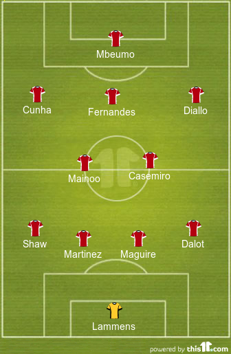 Michael Carrick will opt for the 4-2-3-1 formation and is expected to keep changes to a minimum for this game. Hence, Bryan Mbeumo could once again get a chance to spearhead Man United’s attack in the final third.