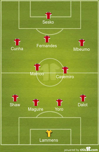 Michael Carrick will set his players up in a 4-2-3-1 formation and is expected to make one change to his first team for this clash. Benjamin Sesko will get the nod to lead the line for the Red Devils up top, while Amad Diallo makes way for him and drops to the bench.