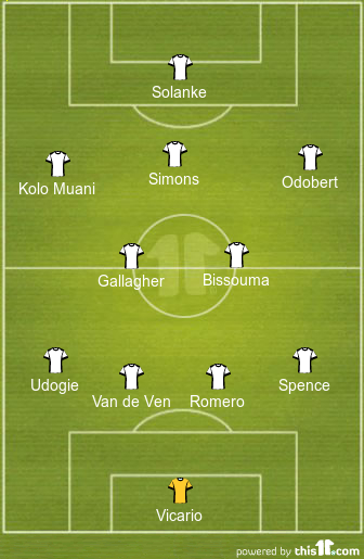 Conor Gallagher and Yves Bissouma will operate as the holding midfielders for Spurs. Their main job would be to make life tough for the home side in the middle of the park.