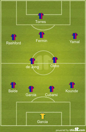 Hansi Flick will set his players up in a 4-2-3-1 formation and is expected to make a few tweaks to his first team for this clash. Ferran Torres, Fermin Lopez and Pau Cubarsi could all play from the start of this game.
