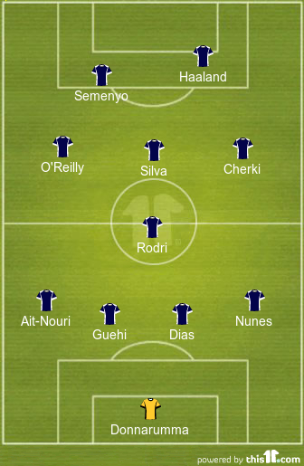 Pep Guardiola will set his players up in a 4-1-3-2 formation and is expected to make some tweaks to his first-team for this game. Ruben Dias and Rayan Cherki could both play from the start of this clash.