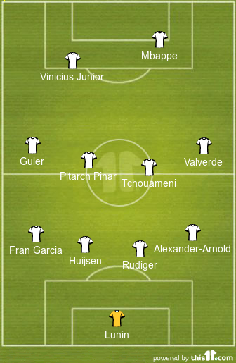 Alvaro Arbeloa will set his team up in a 4-4-2 formation and is expected to make some changes to his first team for this clash. Andriy Lunin and Kylian Mbappe could both play from the start of this Madrid derby.
