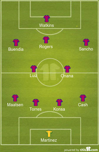 Unai Emery will set his players up in a 4-2-3-1 formation and is expected to make one tweak to his first XI for this game. Ian Maatsen could play from the start of this contest, while Lucas Digne makes way for him and drops to the bench.