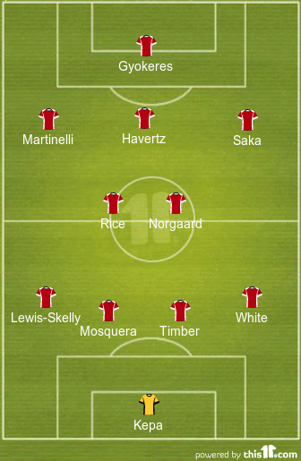 Mikel Arteta will set his side up in a 4-2-3-1 formation and is expected to make a lot of changes to his first XI. Jurrien Timber, Myles Lewis-Skelly and Christian Norgaard could all play from the start of this game.