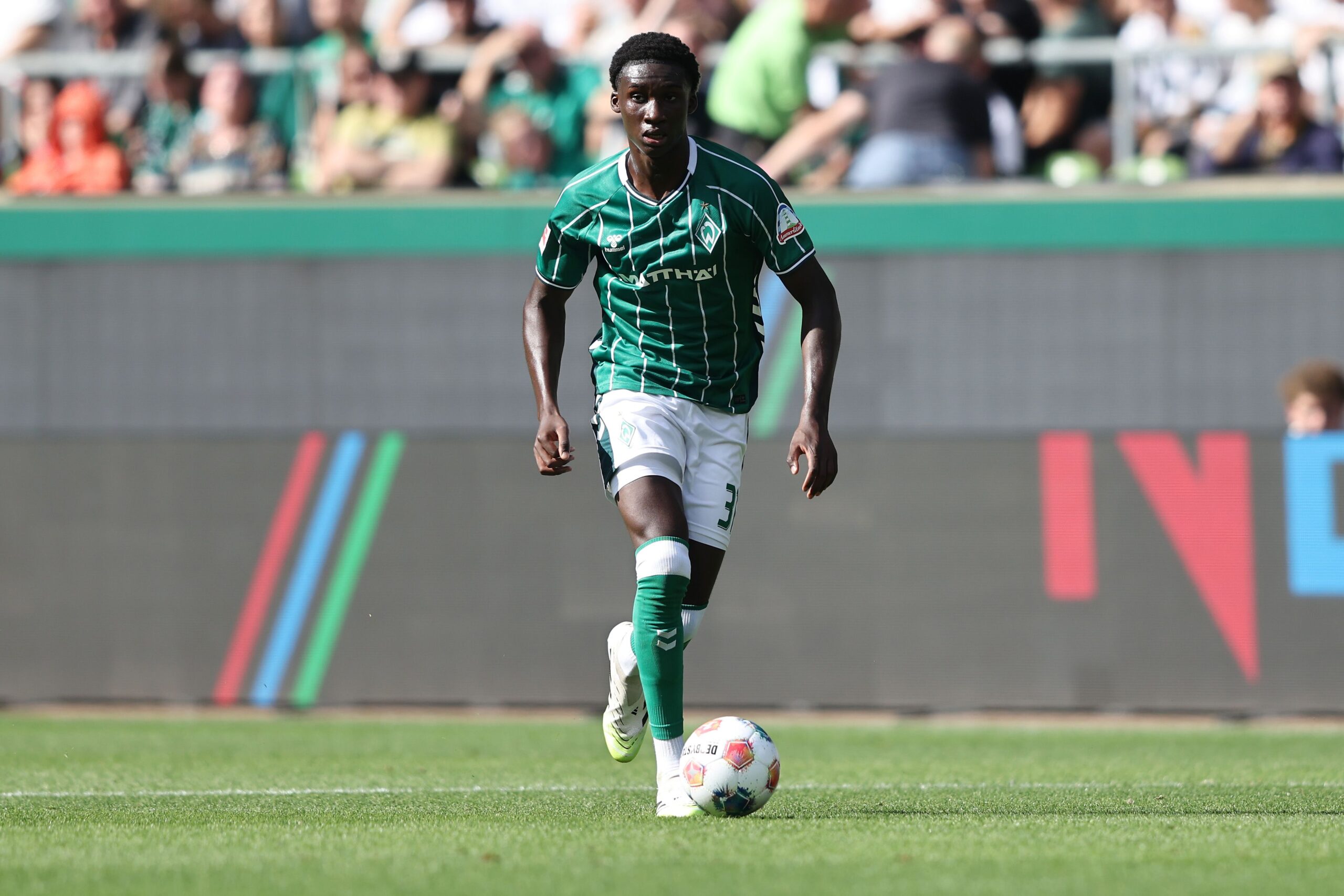 BREMEN, GERMANY – SEPTEMBER 20: Karim Coulibaly of SV Werder Bremen in action during the Bundesliga match between SV Werder Bremen and SC Freiburg at Weserstadion on September 20, 2025 in Bremen, Germany. (Photo by Fabio Deinert/Getty Images)