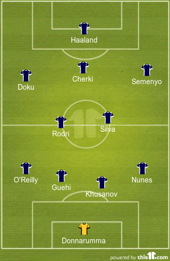 Pep Guardiola will set his men up in a 4-2-3-1 formation and is expected to make one change to his first team for this clash. Gianluigi Donnarumma could play from the start of this game, while James Trafford makes way for him and drops to the bench.