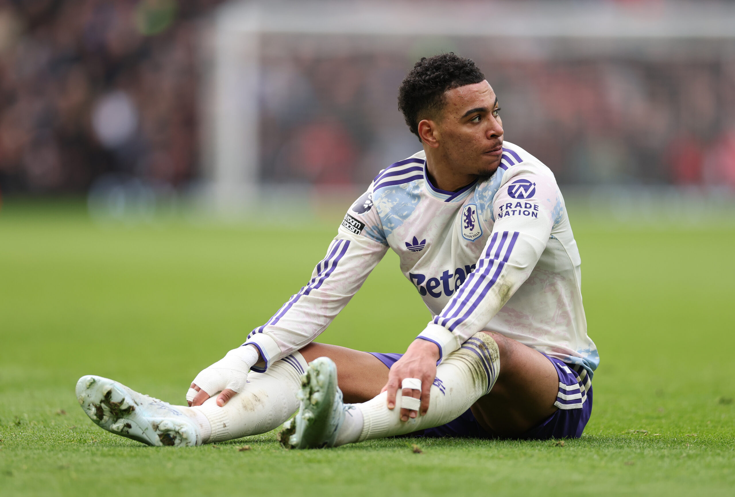 MANCHESTER, ENGLAND – MARCH 15: Morgan Rogers of Aston Villa reacts in frustration during the Premier League match between Manchester United and Aston Villa at Old Trafford on March 15, 2026 in Manchester, England. (Photo by Stu Forster/Getty Images)