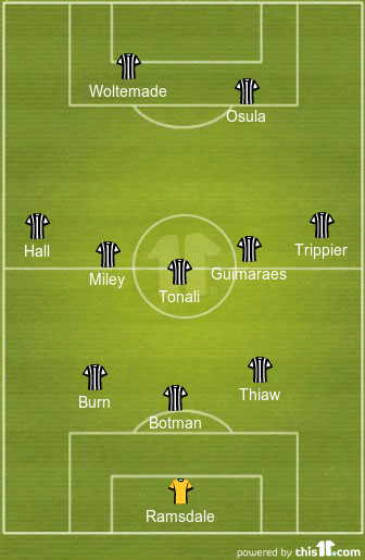 Lewis Hall will try to put in a solid performance as the left-sided wide player, while Kieran Trippier looks to give a good account of himself on the right flank. Both of them will have to make some overlapping runs out in the wide areas.