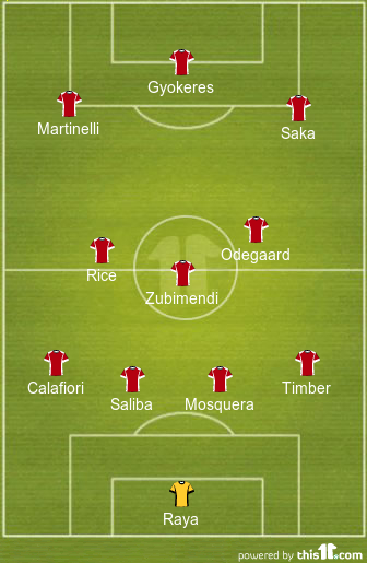 Mikel Arteta will set his side up in a 4-3-3 formation and is expected to revert to his strongest XI for this game. Hence, Viktor Gyokeres will get the nod to lead the charge for the North London club up top.