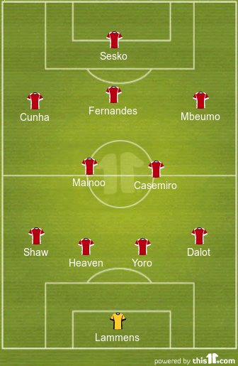 Senne Lammens will feature in between the sticks for the Mancunian giants after conceding two goals in his last outing. Ayden Heaven will operate alongside Harry Maguire at the heart of the Man United backline as they look to keep a solid shape on the defensive end of the field.