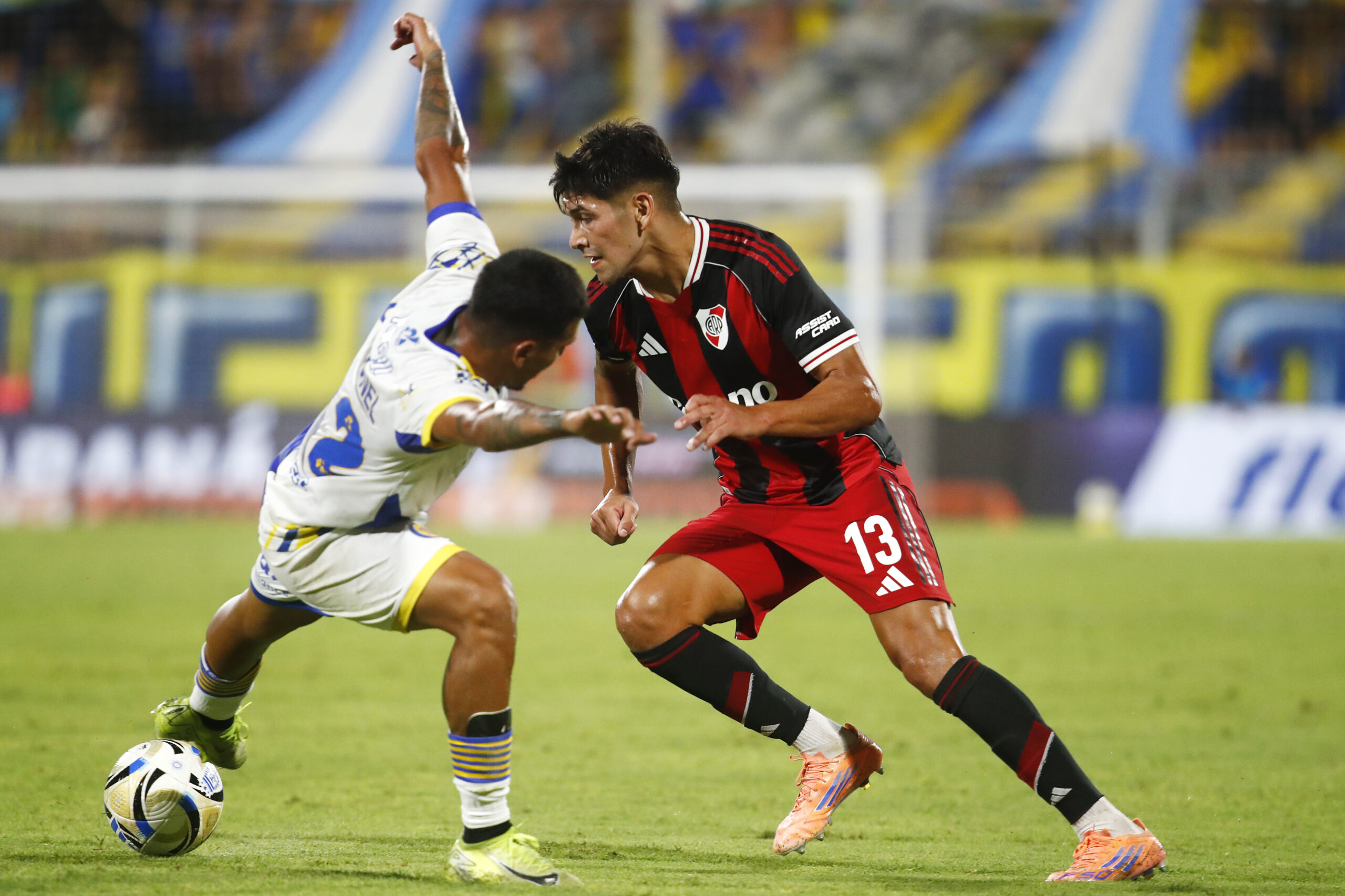 BUENOS AIRES, ARGENTINA – MARCH 15: Lautaro Rivero of River Plate dribbles the ball during a Torneo Apertura Mercado Libre 2026 match between River Plate and Sarmiento at Estadio Más Monumental Antonio Vespucio Liberti on March 15, 2026 in Buenos Aires, Argentina. (Photo by Marcelo Endelli/Getty Images)