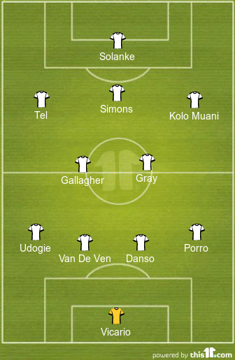 Robert De Zerbi will set his side up in a 4-2-3-1 formation and is expected to make some changes to his first team for this clash. Mathys Tel, Xavi Simons and Kevin Danso could all play from the start of this game.