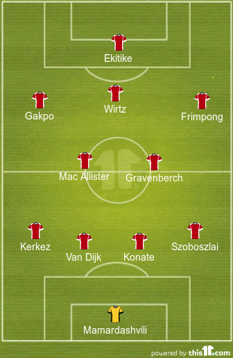 Giorgi Mamardashvili will feature in between the sticks for the Reds after shipping in two goals in his last outing. Ibrahima Konate will operate alongside Virgil Van Dijk at the centre of the Liverpool backline as they look to keep things solid at the back during the 90 minutes.