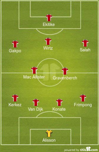 Arne Slot will set his men up in a 4-2-3-1 formation and is expected to name a strong first XI for this game. Alexis Mac Allister, Virgil Van Dijk, and Allison Becker could all play from the start of this clash.